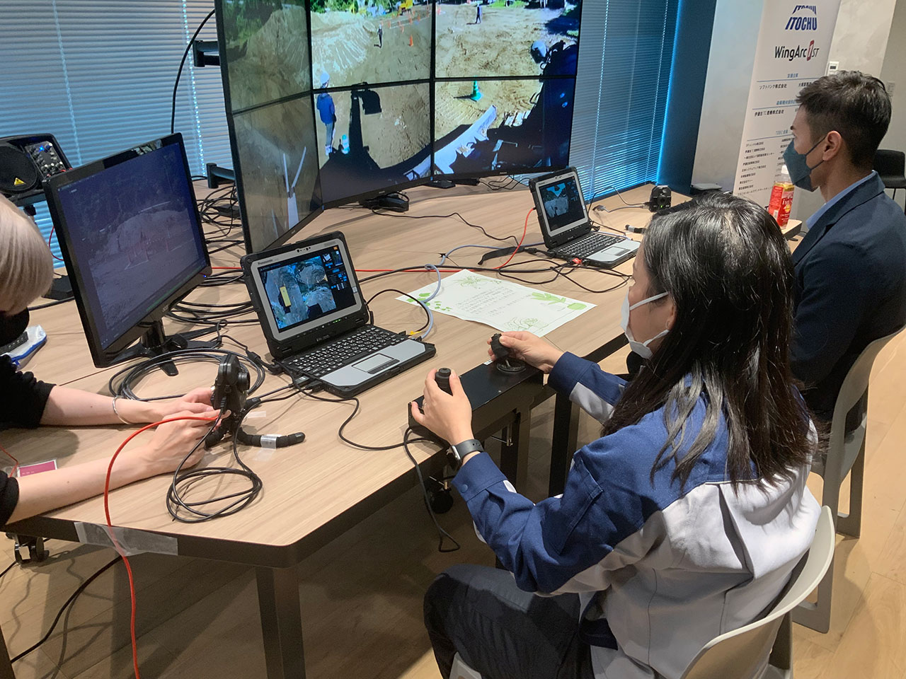 当社からは、土木未経験の外国人女性社員が参加し、遠隔で重機を操作しました。